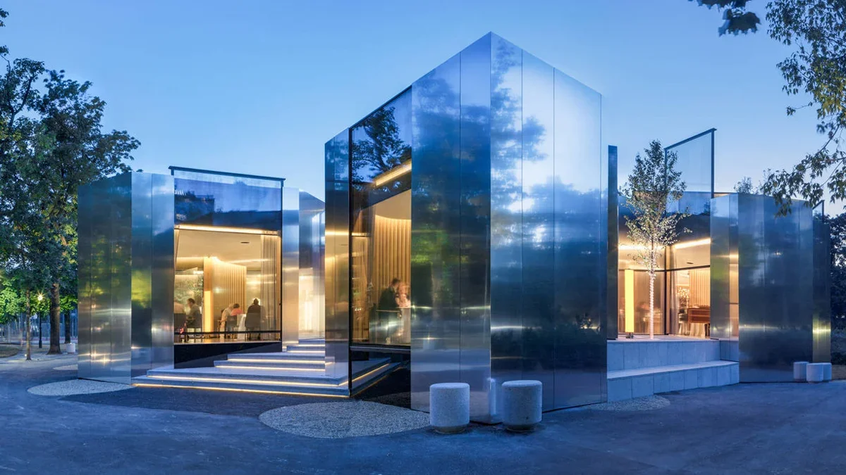 Durch die fingerartig verzweigten Pavillons und die großen Hebefenster fühlt man sich beim Essen fast wie im Freien. Die Außenfassade aus reflektierendem Metall und das helle Holz im Innenraum wirken modern und einladend zugleich. Hier verschmelzen Design und Natur zu einer Einheit, die jeden Besuch – ob vor dem Ball oder an einem ganz normalen Abend – besonders macht.