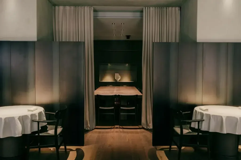 Ein Geheimtipp für Liebhaber des Reduzierten ist das Doubek im 8. Bezirk. Das Fine-Dining-Restaurant beeindruckt mit einer offenen Feuerküche, die als bühnenhafte Inszenierung fungiert. Reduziertes Design mit Schwarzmetall, geräucherter Eiche und Lehmputz schafft eine puristische Atmosphäre, in der jedes Detail sorgfältig komponiert ist. Raumhohe Lichtpaneele und gezielte Beleuchtung verstärken die dramatische Wirkung des kulinarischen Erlebnisses. Das Creative Lead für das Design lag bei Studio Riebenbauer x Parterre.