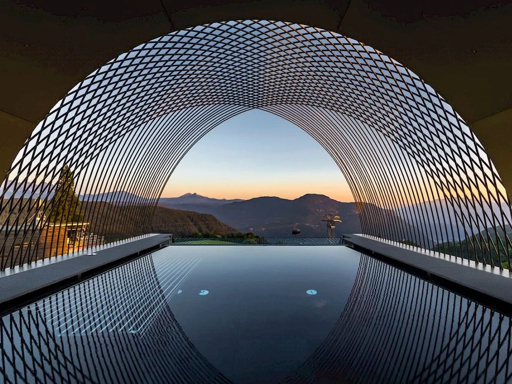 Das Vigilius Mountain Resort liegt auf 1.500 Metern Höhe am Vigiljoch und ist ausschließlich per Seilbahn erreichbar. Der langgestreckte Baukörper wurde aus regionalem Lärchenholz, Lehmputz und Glas gefertigt und so in das Gelände eingefügt, dass er sich optisch zurücknimmt. Technische Installationen sind in die Struktur integriert, sichtbar bleibt ausschließlich die Architektur. Ziel des Projekts war ein möglichst ressourcenschonender Betrieb. Das Resort wurde mehrfach für seine konsequente Nachhaltigkeitsstrategie ausgezeichnet.