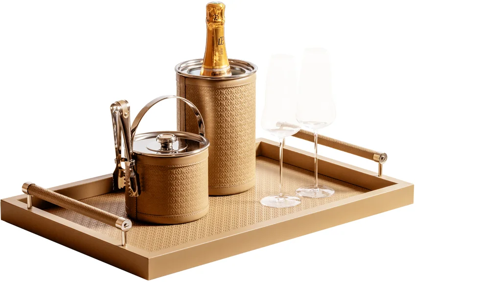 Beide Häuser stehen für kompromisslose Exzellenz, die Accessoires-Kooperation ist die Klimax. Vasen, Buchstützen, Eiskübel, Spielkartenetui – alles dabei.