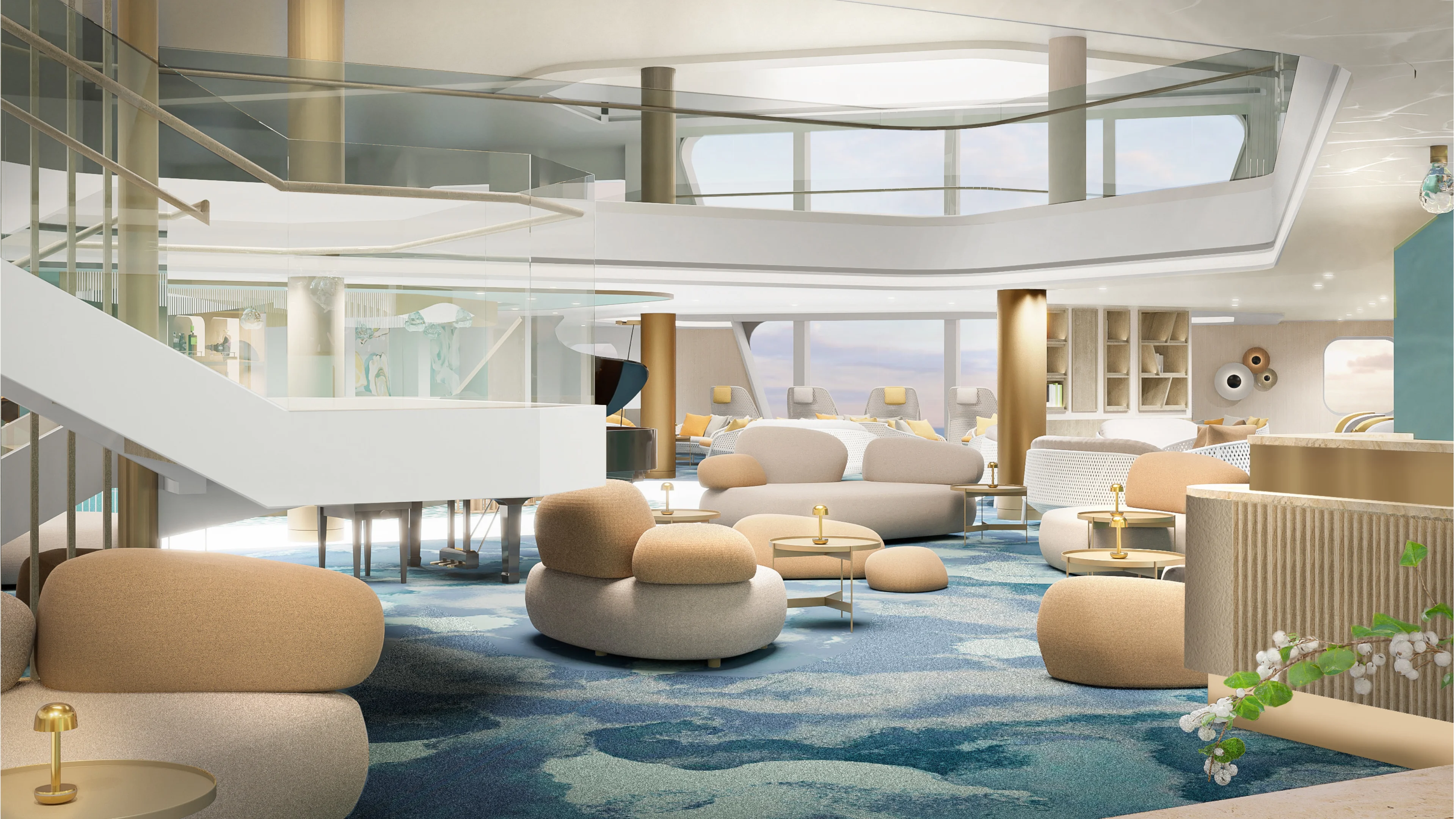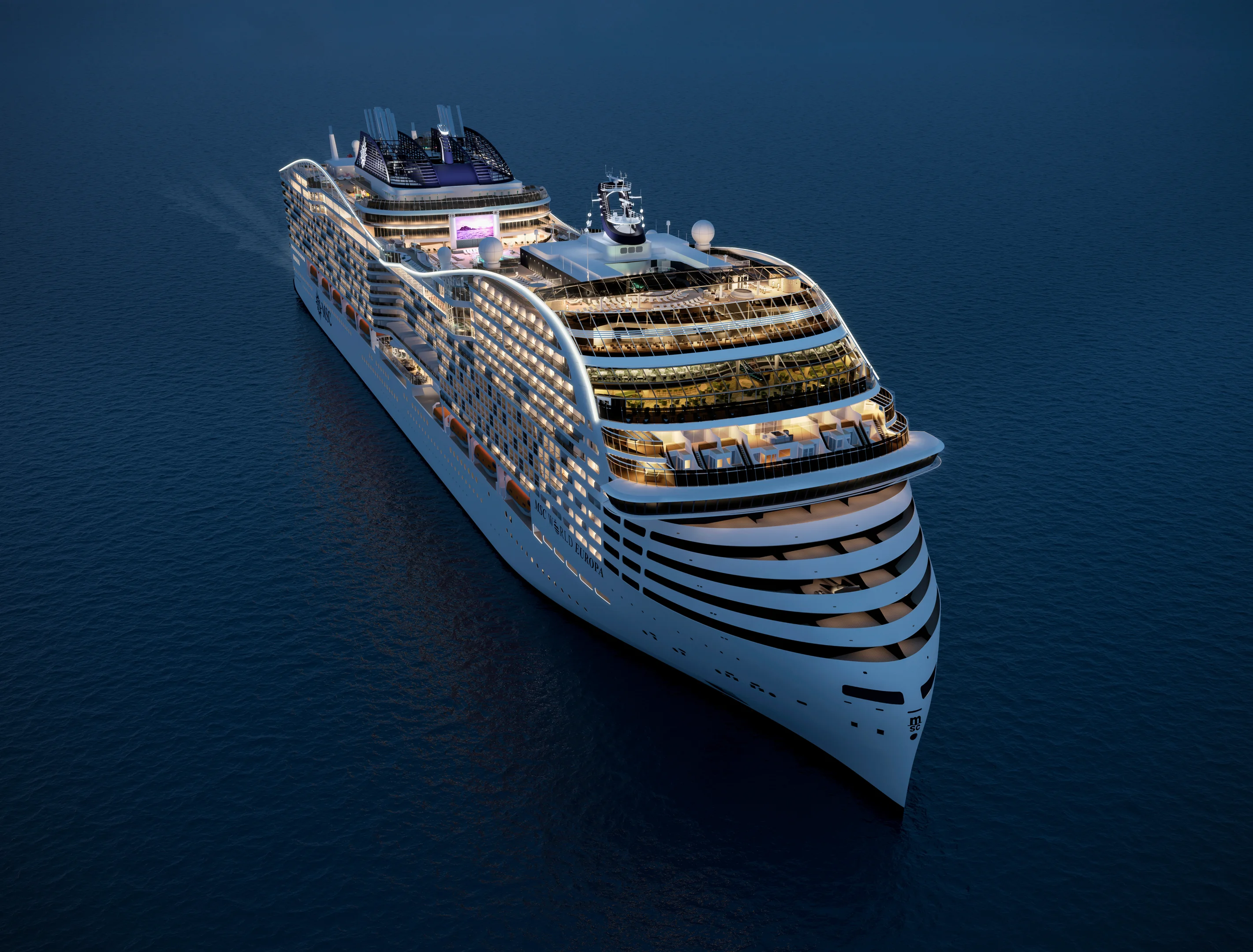 Ende 2026 soll sie als drittes Schiff der World-Class-Serie in Dienst gehen – größer, effizienter und spektakulärer. Über 6.700 Passagiere wird sie aufnehmen, doch sie soll nicht nach Masse aussehen. Ihr Innenleben erzählt von Eleganz, Weite und Weltkultur: asiatisch inspirierte Formen, sanfte Farben, feine Lichtinstallationen. Das Interieur nimmt Anleihen an fernöstlicher Architektur und Ästhetik.