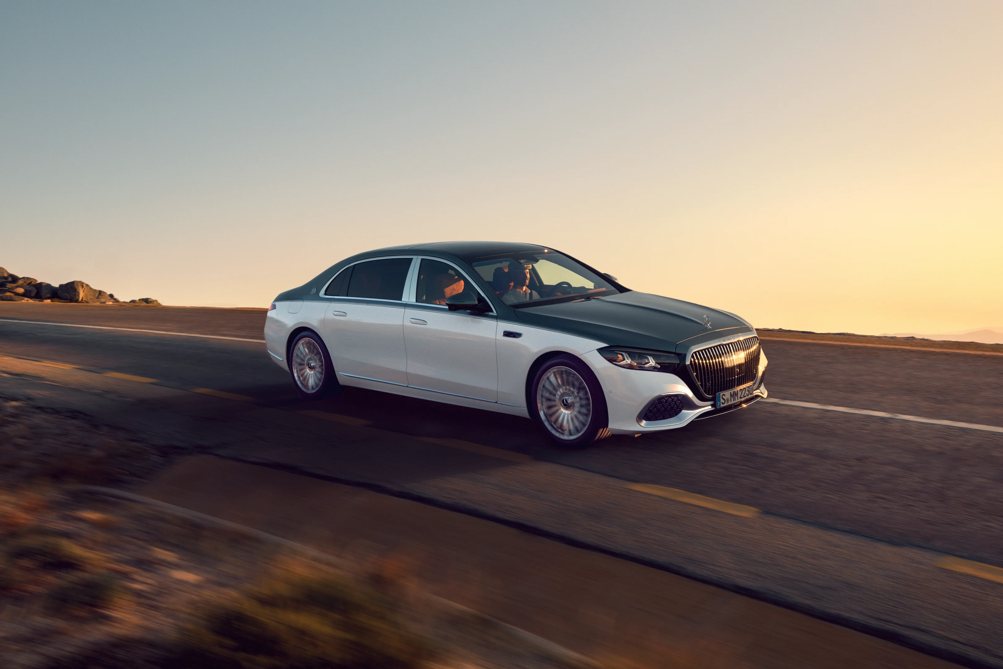 All das kommt zusammen, wenn nun die umfassend überarbeitete Mercedes-Maybach S-Klasse vorfährt: der Glanz der großen Namen und die oberste Liga der wohl hochwertigsten Automobilbaureihe der Welt. Das noch markantere Design bringt ihren einzigartigen Charakter jetzt noch besser zur Geltung; so wie der deutlich größere Kühlergrill, der auf den ersten Blick mehr Status signalisiert. Die beleuchtete Umrandung des Grills setzt raffinierte Lichtakzente – selbst der Maybach-Schriftzug in der Umrahmung ist illuminiert. Zum ersten Mal erstrahlt in ausgewählten Märkten zudem der stehende Mercedes-Stern auf der Motorhaube. V12-Modelle sind an einem neuen Emblem im Grill zu erkennen. Roségoldfarbene Akzente verleihen der neuen Doppel-Stern-Optik der Scheinwerfer eine besondere Note. Das Maybach-Pattern in den Lufteinlässen ist verchromt. Zum besonderen Eindruck trägt das Maybach-spezifische Design der Anzeigen bei: Die Tuben des Kombi-Instruments erstrahlen in exklusivem Roségold und wirken mit ihrem Spiel von Licht- und Glas-Effekten wie Schmuckspangen. Zentral zwischen den beiden Ringen ist ein goldfarbenes Maybach-Logo platziert; ein Ausdruck höchster Detailverliebtheit. Der Hintergrund der Anzeigefläche ist filigran strukturiert und in den edlen Farben Gold, Roségold und Schwarz gehalten. Diese Farbwelt korrespondiert mit einer ebenfalls exklusiven Farbe des Ambientelichts.