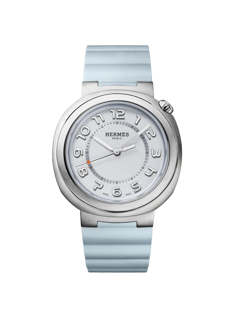Das Schöne an der Hermès Cut: Sie ist reduziert, aber nie langweilig. Ihre Krone sitzt nicht, wo man sie vermuten würde, sondern bei 1:30 Uhr. Ein kleiner Scherz am Rande. Ein ironischer Seitenhieb auf die Konventionen der Uhrmacherei. Wer Hermès kennt, weiß: Handwerk wird ernst genommen, die eigene Haltung dagegen darf spielerisch sein.