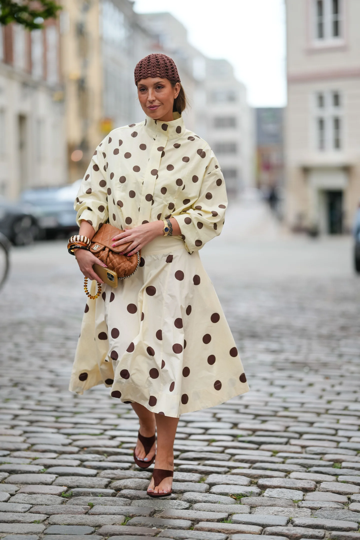 Wer durch die Stadt geht, erkennt die Häkelmütze in allen Stilwelten. In Wiener Bobo-Bezirk Neubau sitzt sie über einem Kurzhaarschnitt, kombiniert mit Oversize-Blazer und glänzenden Loafers. In Paris Montmartre begleitet sie eine Frau in langer Strickjacke und Seidenrock. In Antwerpen blitzt sie unter der Kapuze einer Pufferweste hervor, während Sneakers und lange Socken den Look sportlich brechen. Sie kann nostalgisch wirken oder futuristisch, verspielt oder streng – und vielleicht ist es genau das, was sie so aktuell macht.