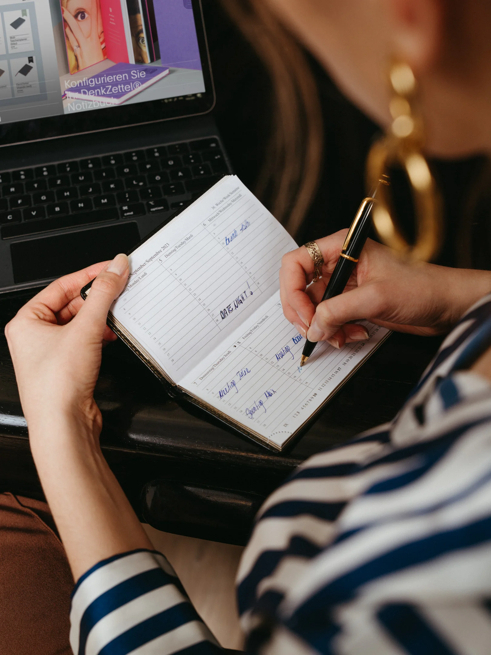 Die diesjährigen Neuheiten kreisen um ein zentrales Thema: analoge Momente, die bleiben. Wochenbuchkalender und Notizbücher eröffnen Raum für Gedanken, Pläne und all die Ideen, die in einer vollen Woche sonst untergehen würden. Die neue DenkZettel-Stationery-Collection erweitert diese Welt um Softcases und Accessoires, die Ordnung schaffen und zugleich ästhetische Statements setzen. Design und Funktion greifen harmonisch ineinander, die Produkte werden wie selbstverständlich zu eleganten Begleitern des Alltags.