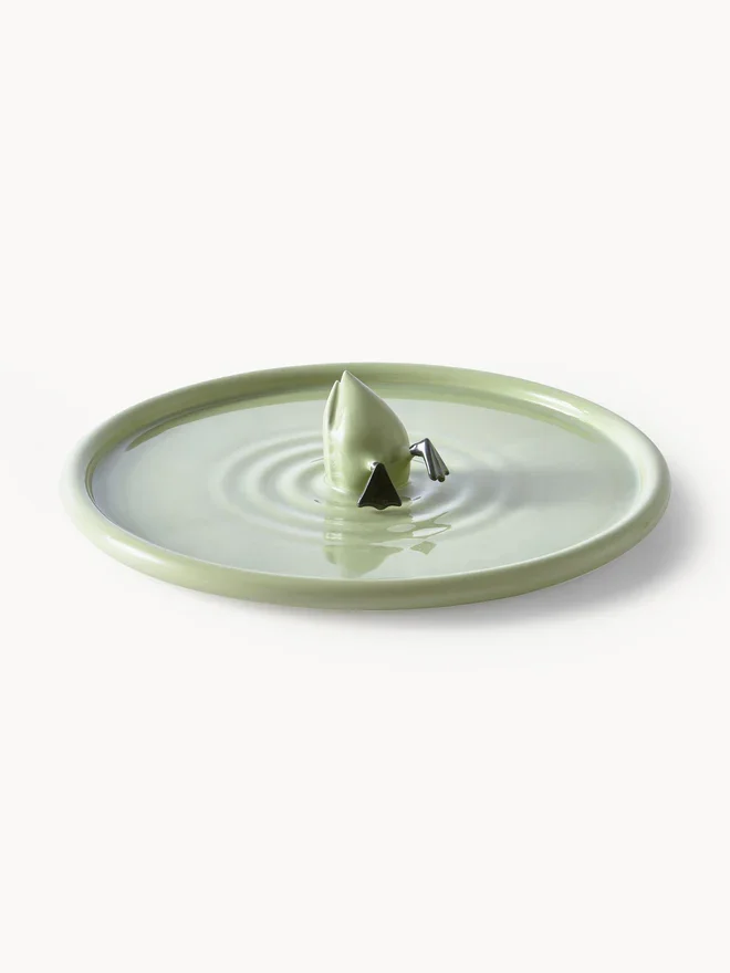 Die handgefertigte Servierplatte „Diving Duck“ von Westwing Collection etwa ist ein Beispiel für diese kontrollierte Exzentrik: Ein Sprung ins Wasser, eingefroren in Keramik – absurd und poetisch zugleich. Daneben die mundgeblasene „Bubbles“-Karaffe von Pols Potten, deren Luftblasen im Glas wirken wie kleine Geschichten.