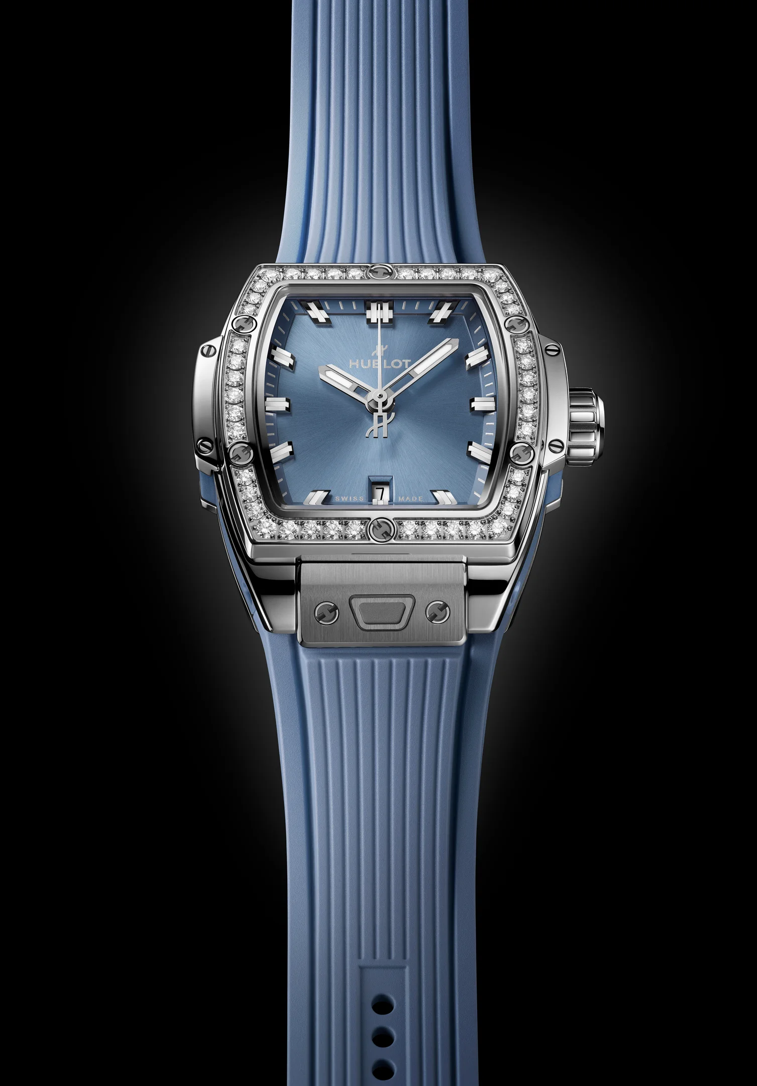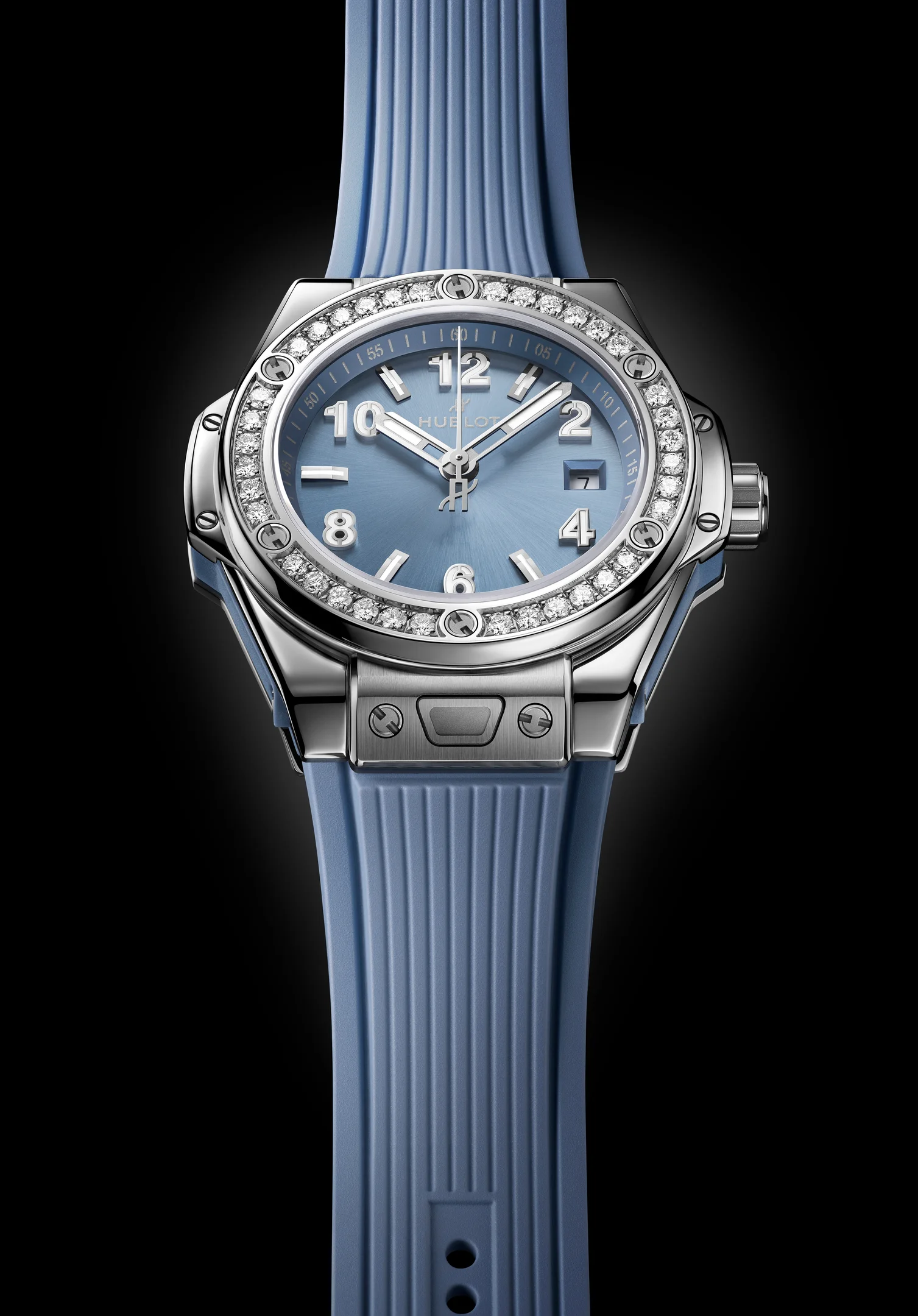 Mit der Erweiterung seiner Big Bang-Kollektion schlägt Hublot ein neues, überraschend leises Kapitel auf. Statt der für die Manufaktur typischen, kraftvoll leuchtenden Farben rückt nun eine nuancierte Farbwelt in den Fokus: Coal Blue. Der neue entwickelte Ton trägt eine Mischung aus Blau, Grau und Schwarz in sich - kühl, mineralisch, fast zurückgenommen. Im Zentrum der femininen Neuheiten stehen die Big Bang One Click Coal Blue Diamonds (33 mm) und die Spirit of Big Bang Coal Blue Diamonds (32 mm). Beide Modelle tragen diamantbesetzte Lünetten, die den mineralischen Charakter von Coal Blue aufnehmen und zugleich veredeln. 36 Diamanten bei der Big Bang und 44 bei der Spirit of Big Bang fassen das Zifferblatt ein, ohne den sportlichen Anspruch der Linie zu verlieren.
