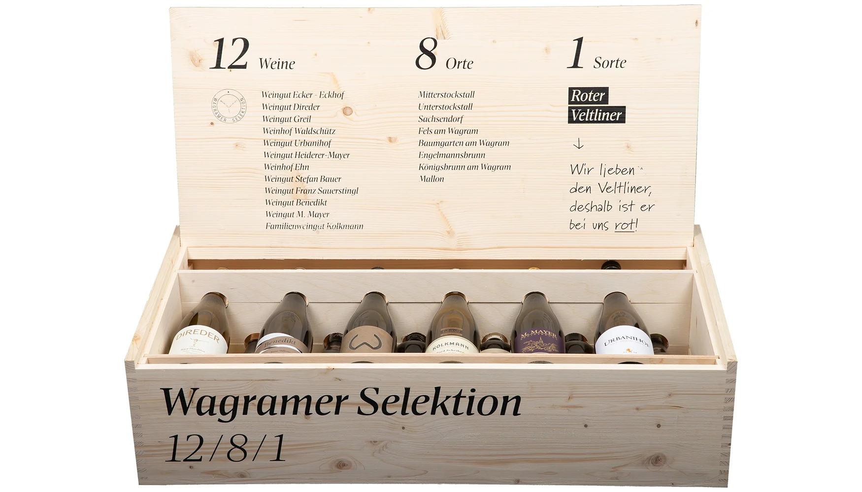 Dass Roter Veltliner mehr ist als ein Geheimtipp, beweist die Geschichte der Wagramer Selektion: Seit 1989 arbeiten die zwölf Mitgliedsbetriebe gemeinsam daran, das Potenzial dieser heimischen Rebsorte voll auszuschöpfen. Die limitierte DiVA-Box mit edler Holzverpackung vom Tischlermeister ist eine Liebeserklärung an ihre gemeinsame Vision: kompromisslose Qualität mit regionaler Verankerung und internationalem Anspruch.